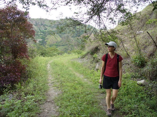 We’ve been waking up the last few mornings to a braying donkey who—from the sounds of things—suffers from both asthma and hairballs. The roosters are crowing, the dogs are barking, and birds new to us are chirping and calling. We’re in Vilcabamba, Ecuador, up in the Andes for a few days of hiking and hammocks before we set out overland for our teaching gig in Peru. Once the morning mist clears, the hosteria’s open air dining room looks down on the green valley and the little town and out onto high peaks on all sides. All this and good coffee too.